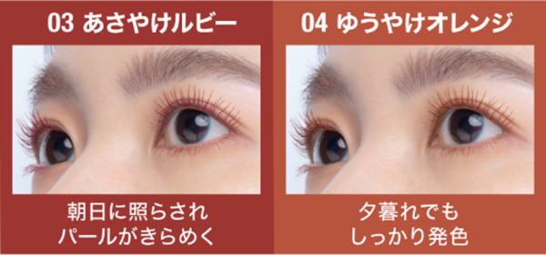 配布されるのは、朝日と夕日に染まった空の色をイメージして作られた「03 あさやけルビー」と、夕暮れの日差しの中でもしっかり発色する「04 ゆうやけオレンジ」の2色。どちらも自まつげが長いように錯覚する自然な仕上がりで大ヒットしている「スカイハイ」シリーズの商品だ。"スカイリフトブラシ"がまつ毛を一本一本とらえてセパレートに仕上げ、根本からしっかりリフト。まつ毛を守る成分が入っているのも嬉しい。ウォータープルーフなので、イベントで騒いでも綺麗な仕上がりがキープされる。